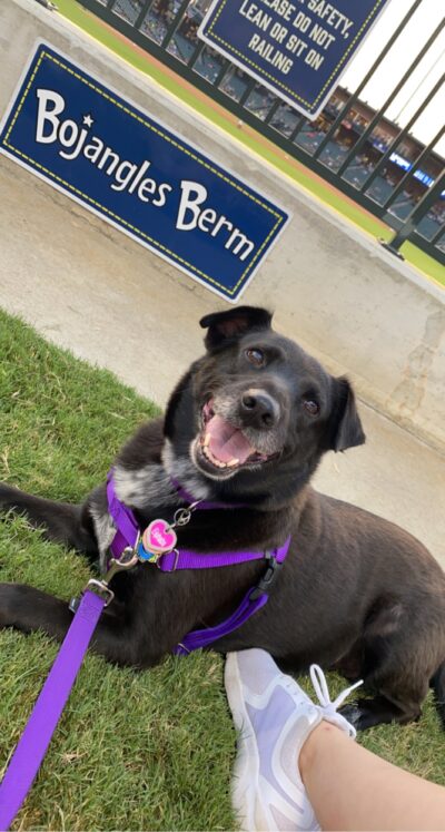 FROM THE MOMENT SHE WAS RESCUED, ELPHABA BECAME MORE THAN A DOG. SHE WAS A CONSTANT COMPANION, A QUIET SHADOW, AND A STEADY PRESENCE. SHE WAS ALWAYS UNDERFOOT, ALWAYS CLOSE, ALWAYS EXACTLY WHERE SHE WAS NEEDED MOST. SHE WENT EVERYWHERE WITH HER PERSON, FAITHFULLY WALKING BESIDE HER THROUGH THE ORDINARY AND EXTRAORDINARY MOMENTS OF LIFE.